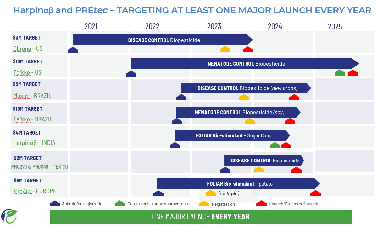 For PHC949, our R&D team focused on the development of production methods and continued work on scaling up manufacture. Great success was achieved in improving yield and scaling up from a 2-litre bench top fermenter to 30-litre tanks and transferring the method to our chosen contract manufacturer where the product is now being successfully produced at 5,000L, commercial-scale production to support the commercial launch in Brazil in 2024.